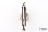 Angelo Campolin Sr. was born in 1923 in Maniago, Italy. He worked on perfecting his knife making skills before WWII and at this time made his first switchblades. After the war, in 1947 he started his company and made 30 stilettos with the marking “Angelo Campolin”. In the 1970’s Angelo’s son Gianni started to work in the company and they were specializing in folding hunting knives and also manual folding stilettos for the Robert Klaas company in Solingen Germany with their Kissing Cranes mark. In 2002 American switchblade collectors Dan Fuller, Brad West, and Tim Zinser were visiting Maniago and enjoying a few glasses of wine in a bar with Angelo Jr. and Gianni. The discussion was about a new name for some knife projects they wanted to pursue. It was Brad West that suggested the tang stamp should be AGA, for Angelo, Gianni, Angelo, thus representing three generations in the knife making business. The Campolins liked it and it stuck. In the beginning it was just a few items, but grew to the point where now there are 12 models and different scale options. The goal has been to offer quality switchblades using the old methods and traditions. Being a collector himself, Angelo Jr. knows what others like. The company headquarters has moved to Austria with production still in the original Maniago shop, as well as the others in Maniago that produce the knives for A.G.A. Campolin.
