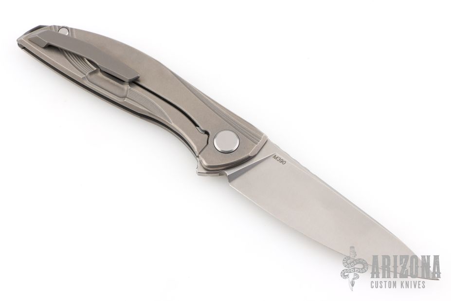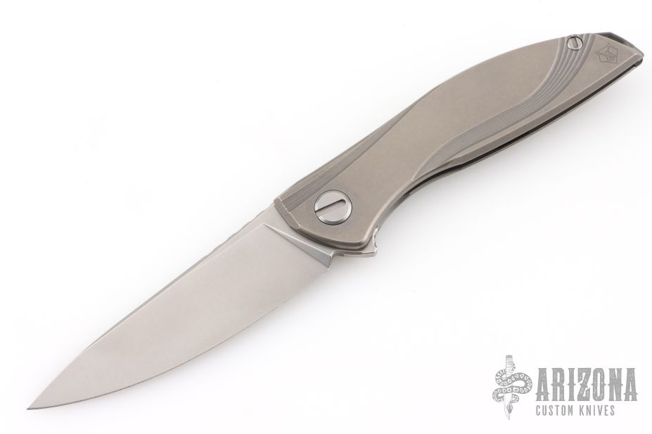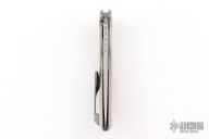 This Neon Retro by Shirogorov Knives features a stonewashed blade with a notched flipper. The handle has a stonewashed titanium frame with matching tip up clip. Nice detent, lockup and blade seating. Has MRBS. Comes with COA, Shirogorov cloth, and a Cova Design leather pouch. Originally from the 2019 CCKS. #20. Has a couple light scuffs, otherwise Excellent condition. Does not have the bit driver that originally came with the set.