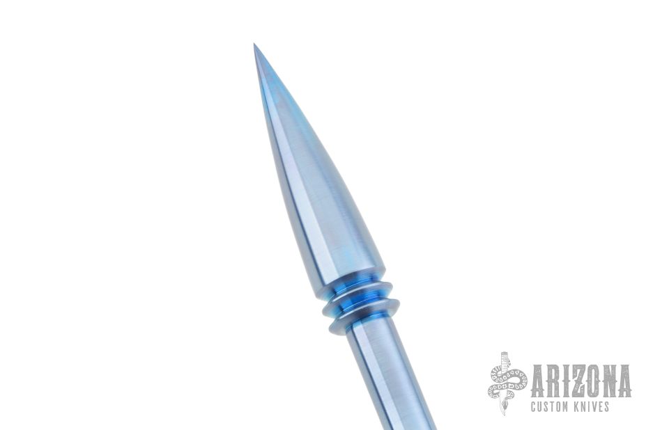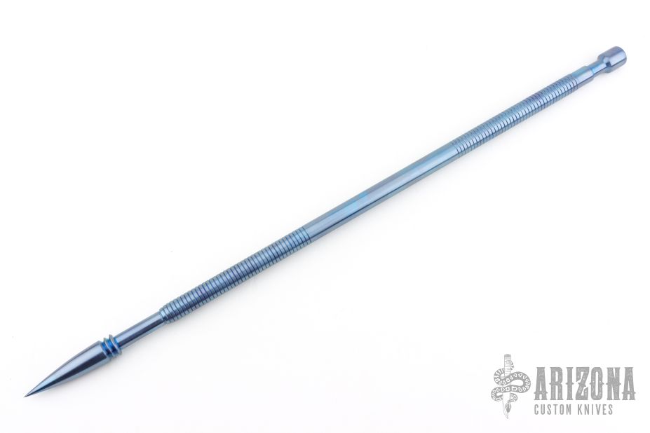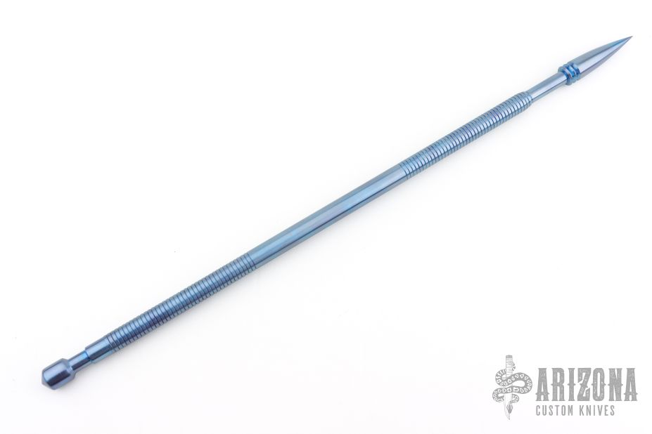 This Short Spear by Pavlin Shahanov is made from anodized and textured titanium. 25.75" overall that is .863" thick. New from maker.