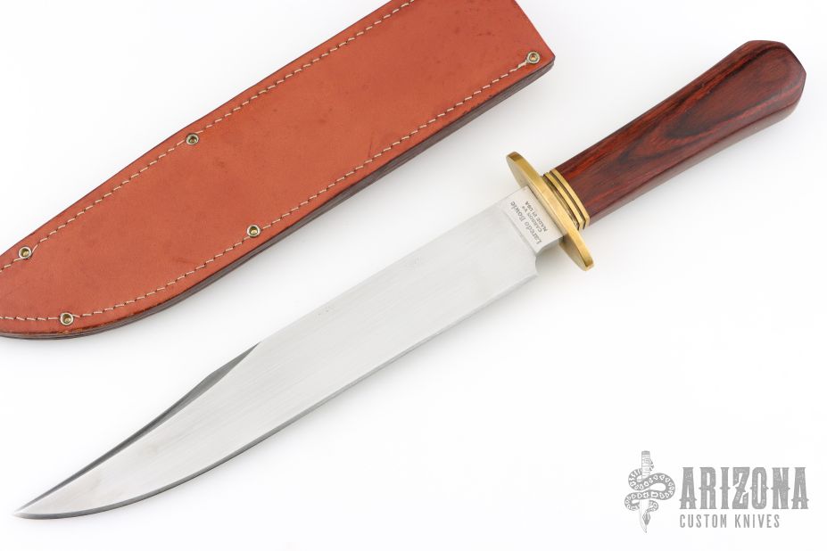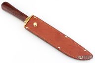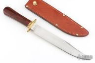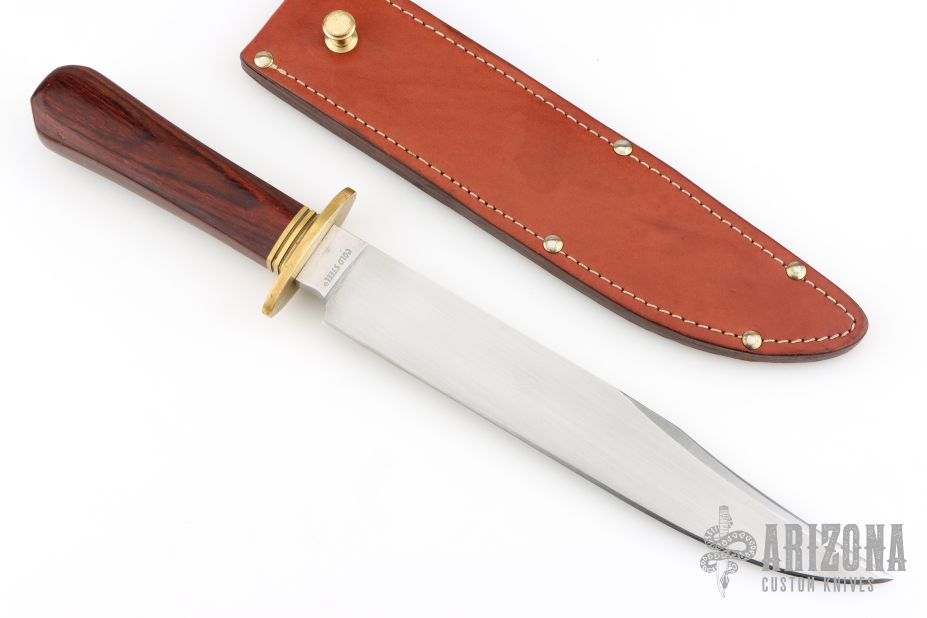 This Laredo Bowie by Cold Steel features a hand rub satin finished blade with sharpened top edge, .291" blade stock and 1.487" blade depth, hidden tang construction. The handle has a brass guard and dymondwood grip. Comes with original brown leather sheath. Has some light scratches, has been sharpened, otherwise good condition.