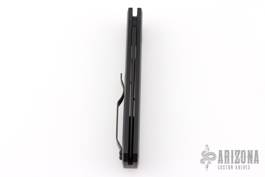 This knife features a black sterile blade.  The handle has a black aluminum frame with black hardware and black stainless steel tip up clip. Comes with original box, pouch, and papers.  Has some scratches on the clip. Great overall condition otherwise.