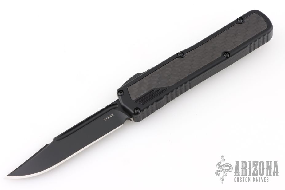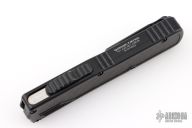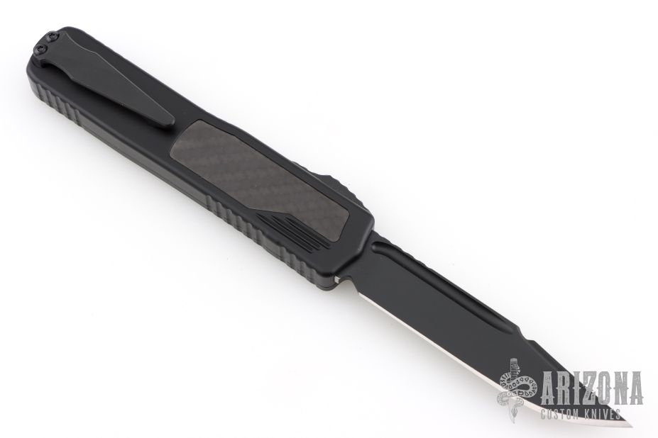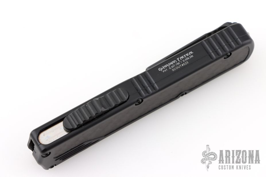 The Guardian Tactical Scout is the next evolution in the GT line. Smaller than a Recon-035 and bigger than a 025, the Scout hits the EDC sweet spot. Think slim upgraded 035. Black aluminum handles with carbon fiber inlays make for a sleek-looking carry. A machined titanium arrowhead pocket clip has good retention and a unique look. The Scout is a great OTF for anyone wanting a compact OTF with big cutting power.