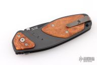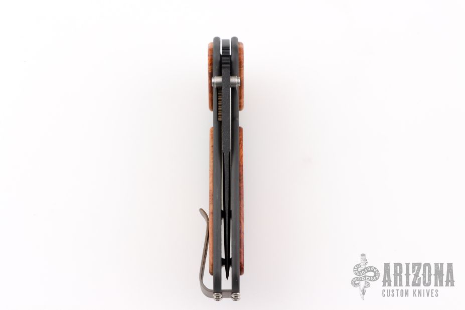 This Xi 188 BATR by XiKar features a black tanto blade with dual thumbstuds. The handle has a black aluminum frame with woodinlays and a tip up reversible clip. Made by LionSteel. Comes with original box and papers. Has a couple light scuffs and scratches, great condition otherwise.