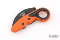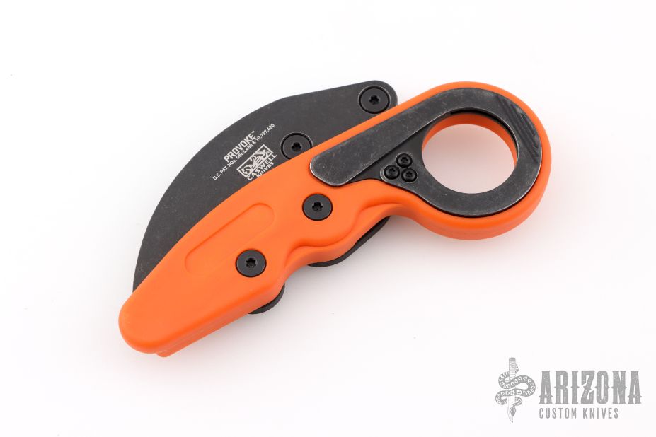 The Provoke™ Orange morphing karambit knife draws on ancient design but it’s hiding a futuristic secret. The first knife ever to feature Kinematic® technology, it stays neatly tucked away in transit and comes to life when there’s trouble afoot. Now built with Grivory®—a strong, lightweight, engineered thermoplastic—it’s more lightweight, adept, and crafted to go anywhere.