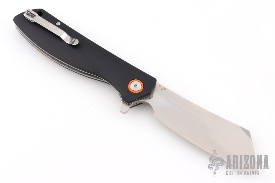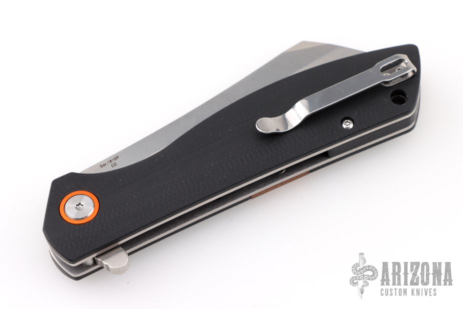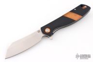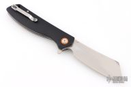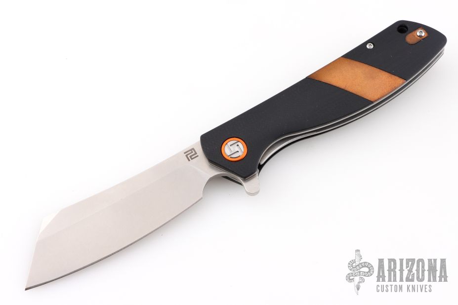 The ArtisanCutlery Tomahawk has a stylish, sweeping cleaver-style blade that excels at cutting, chopping or slicing tasks. The knife's long, slim design allows for exceptional stability while still fitting well in the pocket and the hand. The 3.94" stonewashed cleaver blade is made from D2 tool steel which is known for its exceptional hardness and edge retention. The handles on this limited edition are made from black G10 with a raw copper band. It includes a lanyard hole and stainless steel pocket clip set up for tip-up, left/right carry. It's a fantastic quality knife that ArtisanCutlery is proud to present to you.