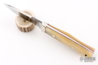 "It started with a piece of steel and some micarta in the back of my father's shop in 1975. I suppose I would be horrified by that first knife now. It was a rough piece of work with more things wrong than right, but that first ungainly knife did ignite something in me, and that something still burns over 45 years later. Like everything, my interests have evolved over time. The early 90's were a turning point in my knife making, with my focus turning toward folding knives and the interframe type of knife. Adding stone inlays to my knives required that I add a new set of skills to my knife making, and rekindled my passion as well. Time marches on, and two decades later I find myself once again evolving, reworking my designs to include the larger pocket knives that my customer's are now asking for. Whether fixed blade or folding, making knives is what I do."