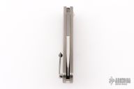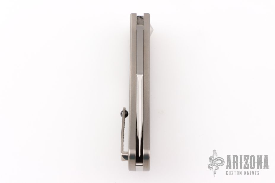 This Rebel Slipjoint by Jim Burke features a satin finished blade with nail nick. The handle has a bead blast finished titanium frame with carbon fiber inlay, tip up titanium clip with ceramic ball, titanium hardware. Has half-stop, flush in all positions. Has a couple light scratches, otherwise excellent condition.