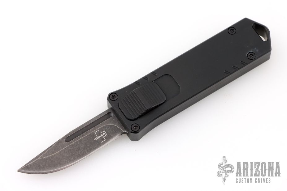 As a portable storage media, USB sticks have become an integral part of our everyday life. The Boker Plus USB OTF is an extremely handy automatic knife, which strongly reminds of the characteristic design of common USB sticks. The knife has a slider on the front side of the handle, which allows the blade of D2 to shoot out of the handle as fast as an arrow. Small everyday cutting jobs are thus completed in no time at all thanks to the practical one-hand operation. The elegant dark stonewash finish of the blade harmonises perfectly with the straight-line handle made of CNC-milled 6061-T6 aluminium. Thanks to the lanyard hole, the knife can also be carried ideally on a key ring. With high-quality case for storage.