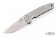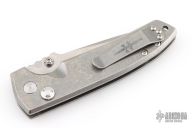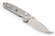 This Project VECP Buttonlock from Les George features a stonewashed CNC flat ground blade and a tumble finish titanium frame. Tip up titanium clip. Phosphorus bronze washers. Smooth action. Nice blade seating, detent and lockup. Comes with maker's zipper case, and an extra clip (plain). Excellent condition.