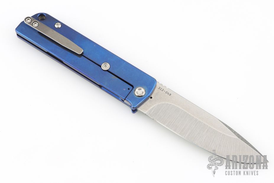 This Antik front flipper frame lock by Medford Knife and Tool features a satin finished drop point blade with notched thumbrest and thumbhole. The handle has a stonewashed and anodized titanium frame and tip up clip. Nice blade seating, detent and lockup. Comes with original box, papers, clasp case, and dog tag. Papers are dated FEB082024. Has a couple light scratches, excellent condition.