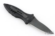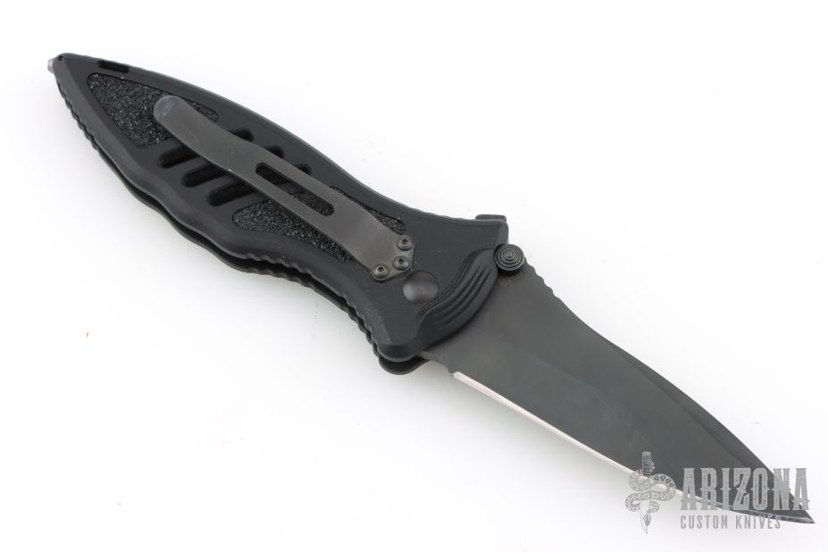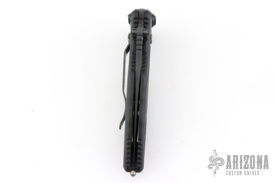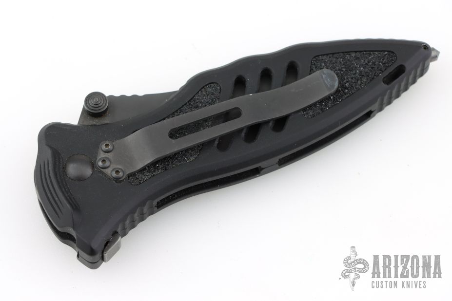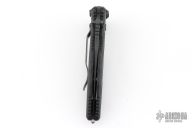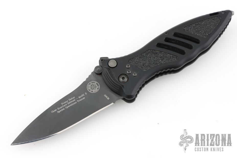 The Masters of Defense Dieter CQD Mark II is a smaller, more concealable version of its award-winning big brother, the Mark I. Like the Mark I, it features high-strength milled-aluminum construction, a state-of-the-art plunge lock mechanism, and a secondary safety lock to prevent accidental release of the lock during use. It also boasts a three-dimensional hilt, ergonomic handle design and textured wingwalk insert panels to provide an exceptionally secure grip under the most demanding operational conditions. The butt of the Mark II’s handle houses a carbide glass breaker for breaching windows. In addition to expanding the Mark II’s scope of application in both operational and rescue situations, this feature also provides the capability for focused impact strikes to pressure points during close-quarters combat. A spring-steel pocket clip supports convenient tip-down carry in the pocket or waistband and is reversible for left or right-side carry. 154CM blade steel. Has light scuffs, otherwise excellent condition.