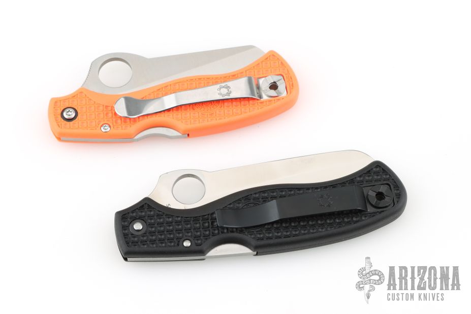 This C14PBK Rescue from Spyderco features a sheepsfoot style satin finish blade with thumb hole. The handle is comprised of textured black FRN over stainless steel lock back. Reversible black coated steel clip positioned for tip up carry. Includes original box. Has a couple light scuffs, otherwise Excellent condition.