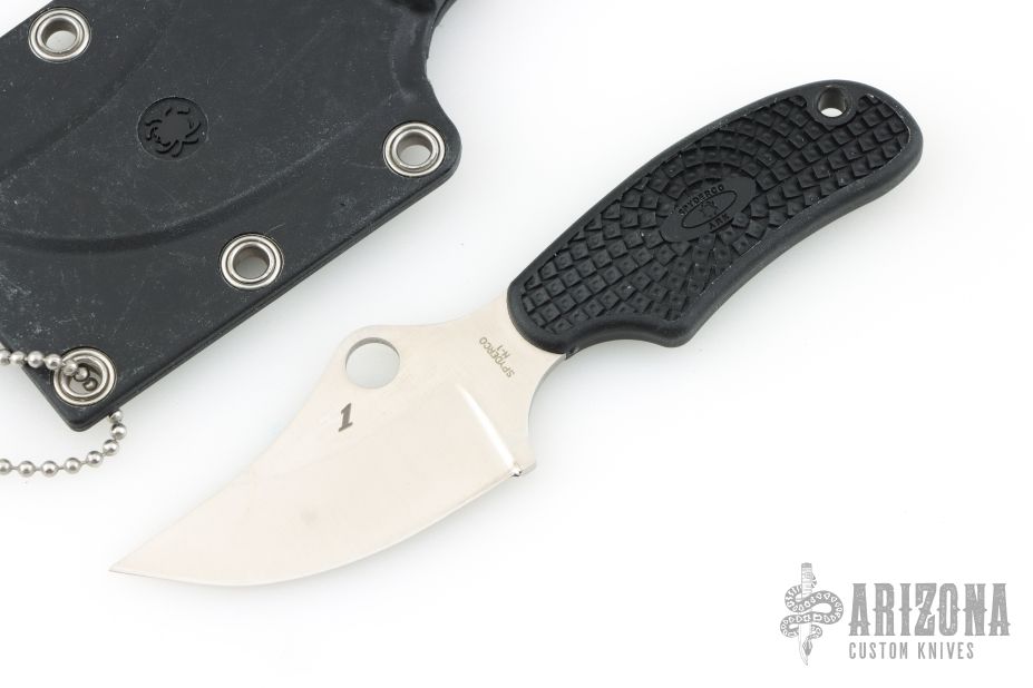 The heart of the ARK is its deeply curved clip-point blade ground from H-1® steel—a nitrogen-based alloy that is extremely corrosion resistant. The curved edge packs impressive cutting power into the compact blade and the clip-point profile ensures a strong, extremely sharp point. The ARK’s fiberglass-reinforced-nylon (FRN) handle is molded directly onto the tang and features Spyderco’s proven Bi-Directional Texturing™ pattern and an index-finger groove to guarantee a secure grip—even with wet hands.