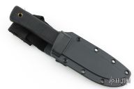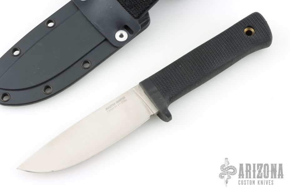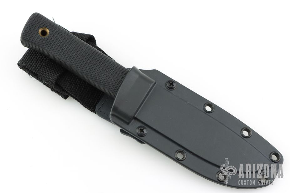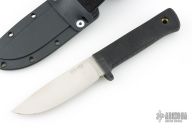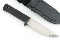 The spine of the blade is a full 3/16" thick to allow for the necessary strength and stiffness to field dress and skin the biggest animals like elk, moose, brown bear, and the African Dangerous Seven. The grip is specially designed to promote long use without fatigue. Made of the shock absorbent, slightly tacky feeling Kraton, and featuring our deeply checkered surface, it positively won't slip no matter how wet or bloody your hands get. Plus, Kraton has specially enduring advantages in that it will never rot, shrink, crack, splinter, or mildew, and is completely impervious to even the harshest weather. Comes with original box and sheath. Has a couple light scratches, otherwise excellent condition.