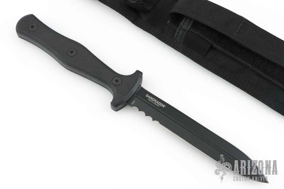 The Sangrador is forged to make an enemy think twice. The dual-edged Sangrador is a combat knife with a dagger style blade that serves one purpose. Let's hope someone rushing at you never finds out.
