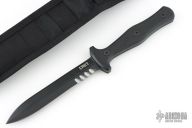 Sangrador means bleeder in Latin. This knife takes its role seriously. A 5.5" dual-edged SK5 steel dagger style blade that has unbelievable penetrating abilities. Add Veff Serrations and you have a knife that feels as powerful at preventing attacks as it does cutting through cord and rope. A black powder coat finish resists corrosion and camouflages it perfectly in the dark of night.