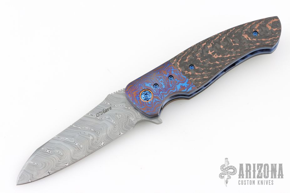 Sean O'Hare is owner and operator of O'Hare Knives. Sean has been making handcrafted custom knives since 2001, moving to full time knife making in early 2009. He strives to make each of his handmade knives with a clean well thought out design that is both great looking but also very functional. At present his custom knives are mostly stock removal via flat grinding but some knives are forged, he also forges his own Damascus. Typical steels used are CPM154CM, CTS XHP, O1, or Damascus. Handle materials include Stabilized Woods, Carbon Fiber, G10, Micarta, Mammoth Ivory, Water Buffalo Horn, or Giraffe Bone. Arizona Desert Ironwood has also been added to the inventory and although not stabilized it is hard.