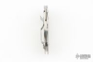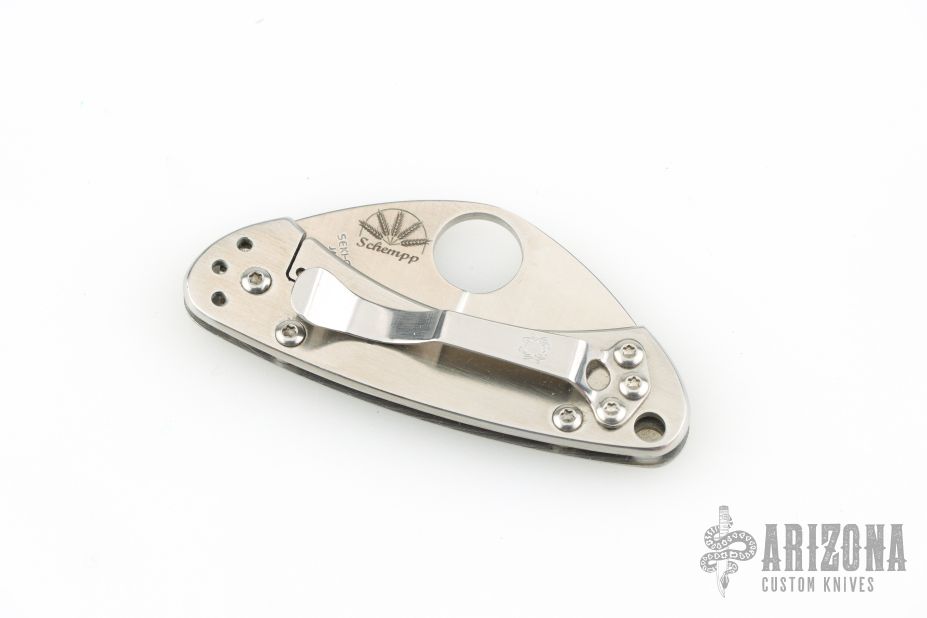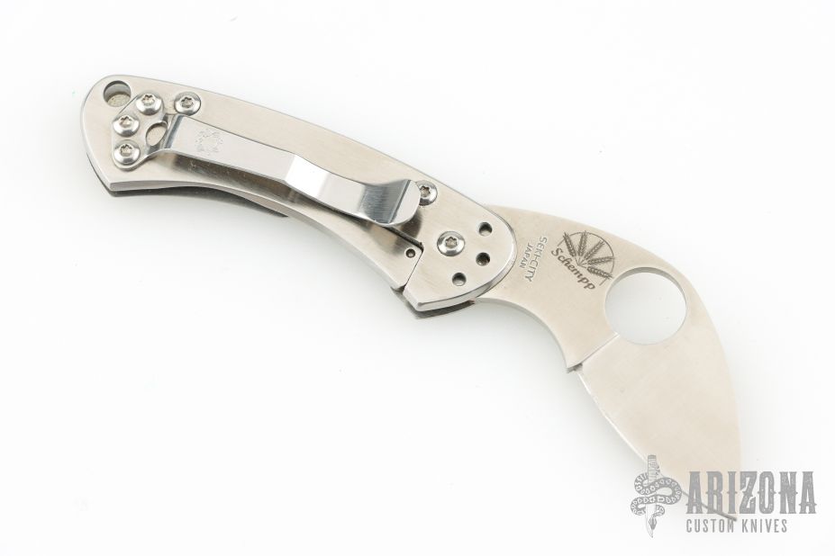Balance is defined as a state of equilibrium or equal distribution. It’s also an ergonomic Schempp folder with a VG-10 blade, ground full-flat, that arcs upward in a radical curve with a deep finger choil. With the index finger in the choil, the cutting edge is aligned with the forearm moving the blade’s weight back and the center of gravity forward toward the cutting edge where it responds like a natural extension of the hand. The enlarged Spyderco Round Hole positions the thumb correctly for flowing one-hand operation. Reeve Integral Lock (R.I.L.)