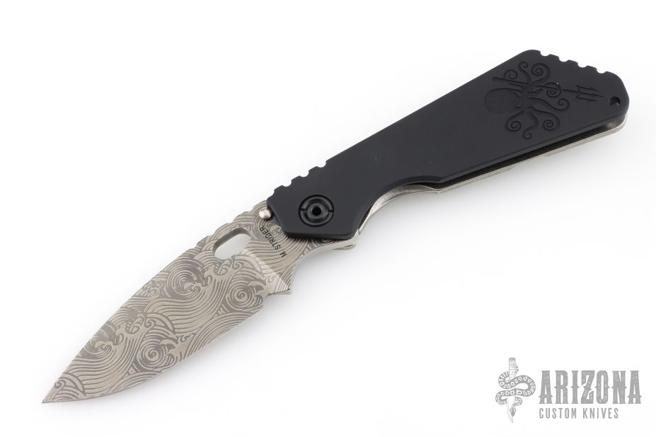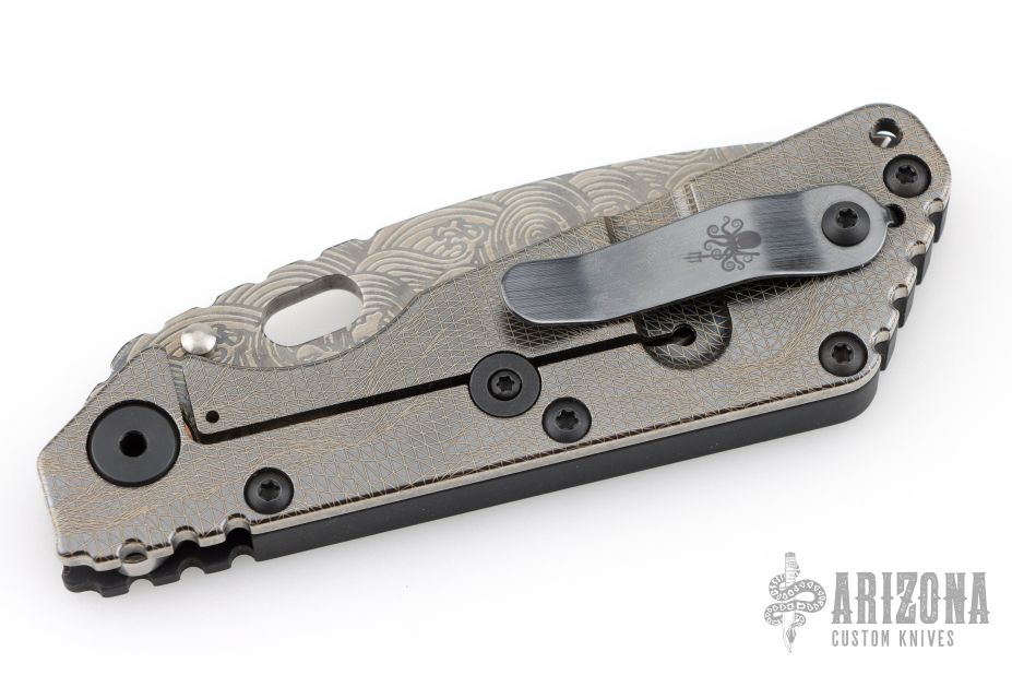 This MSC SMF framelock folder by Mick Strider features a laser engraved blade and a black aluminum and laser engraved titanium frame and tip up titanium clip. Includes Hinderer "Lock Bar Stabilizer" for maximum reverse lock retention. Nice detent, lockup and blade seating. Comes in a zipper case. Excellent condition.