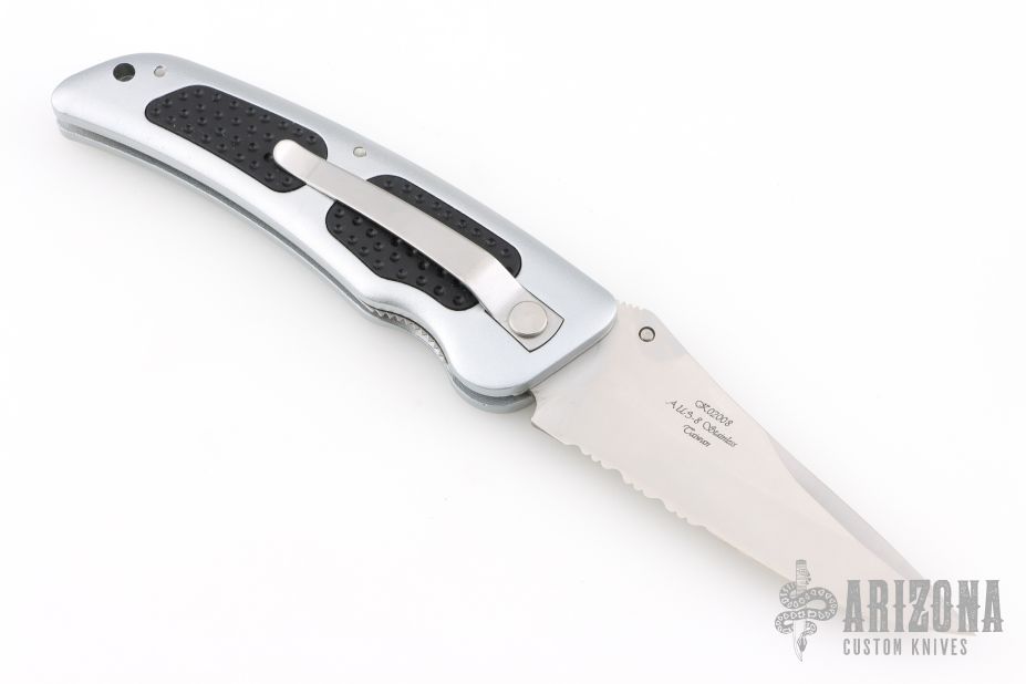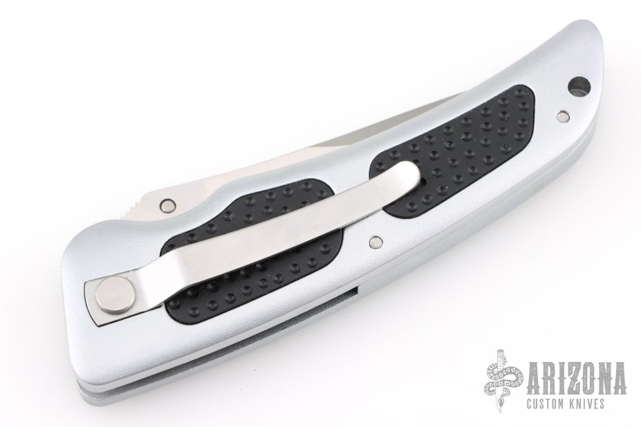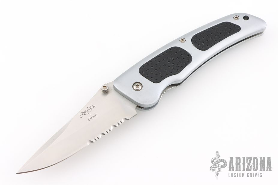 Patriots. Mercenaries. Adventurers. Tales of the Foreign Legion are awash with pictures of nameless men, fighting in nameless places - all for the thrill of the battle. The Junglee Foreign Legion folding combat knife reflects the power and pride of those famous forces. Available in both razor and semi-serrated blade styles, the Crocodile series offers an imposing 4" false-edged drop point blade, crafted in premium AUS-8 stainless steel, along with contoured aviation-style aluminum scales, highlighted by triple-inset textured rubber grips and a stainless steel pocket clip.