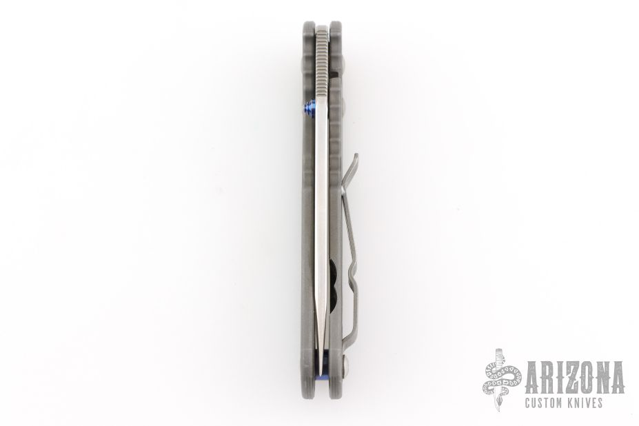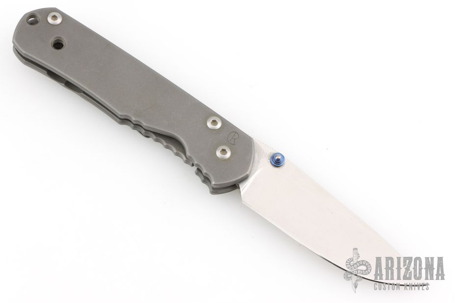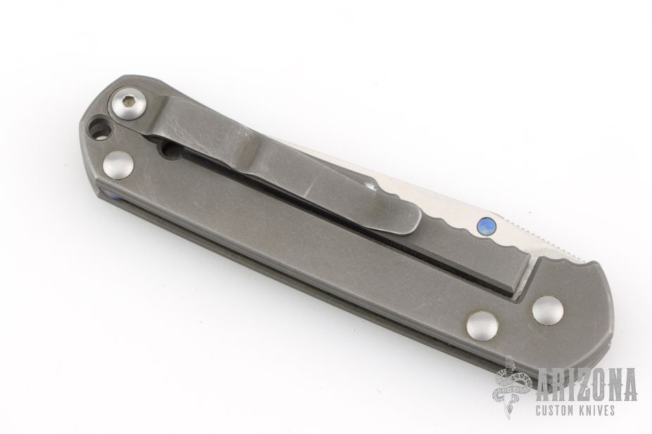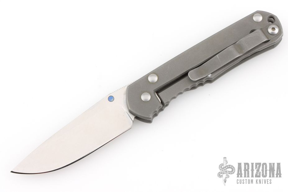 This Small Sebenza Lefty by Chris Reeve Knives features a tumble finish blade and bead blast titanium frame. Anodized titanium thumb stud and barrel spacer. Lanyard hole in pommel. Nice detent, lockup and blade seating. Tip up clip. Comes with original box and COA dated September 6, 1999. Has some scuffs and scratches, otherwise good condition.