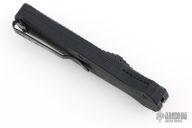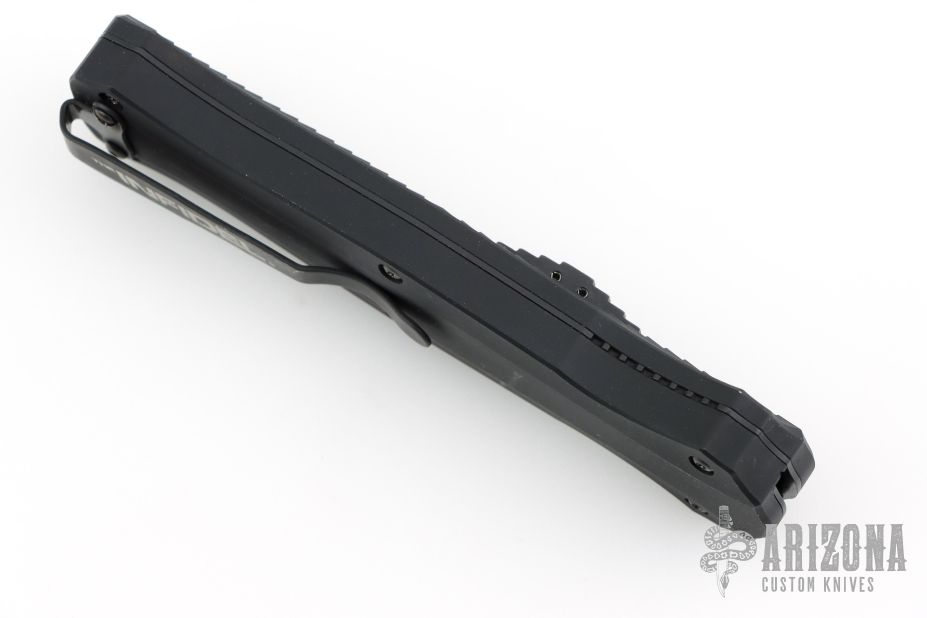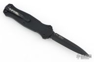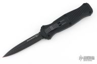 "Introducing an OTF like none-other.. The new Infidel® is rapidly making believers out of many a skeptic. Built for strength and reliability the patent pending double-action mechanics get it done over the long haul. Grab on and you will find the handle grip rock-solid with its patented machined in Presidio® style bi-directional tread pattern, and overall generous sizing for gloved hands. Intuitively pressure the release-slide forward and its spear-point edged steel fires and locks up with a unique three-point retention system with amazingly negligible blade play. Reverse the process and the blade retracts in a rapid blur of motion. The Benchmade Infidel is a special operator’s fantasy come true." Comes with original box, pouch, and papers. Has scuffs, scratches, and some blade play. Good condition otherwise.