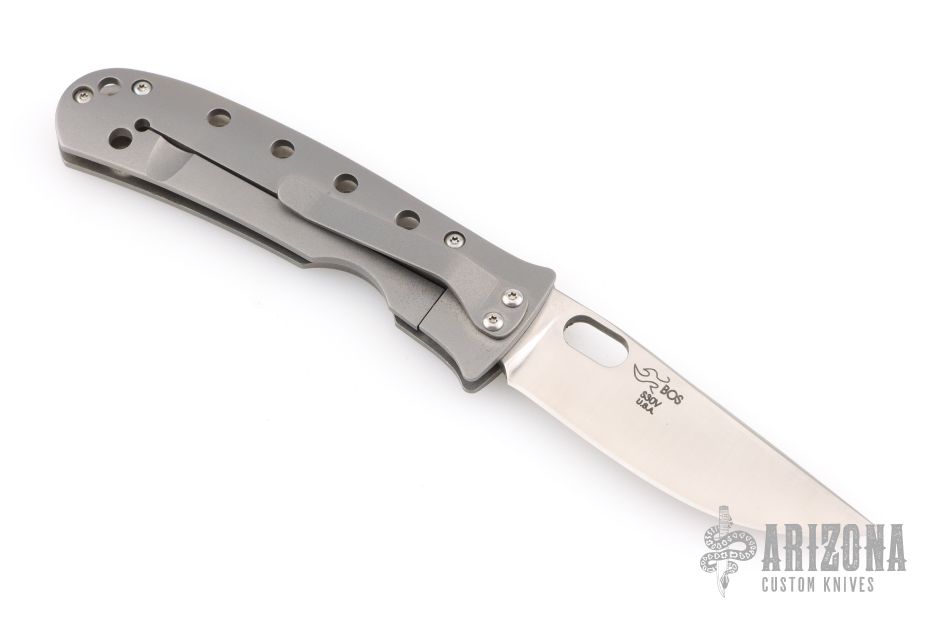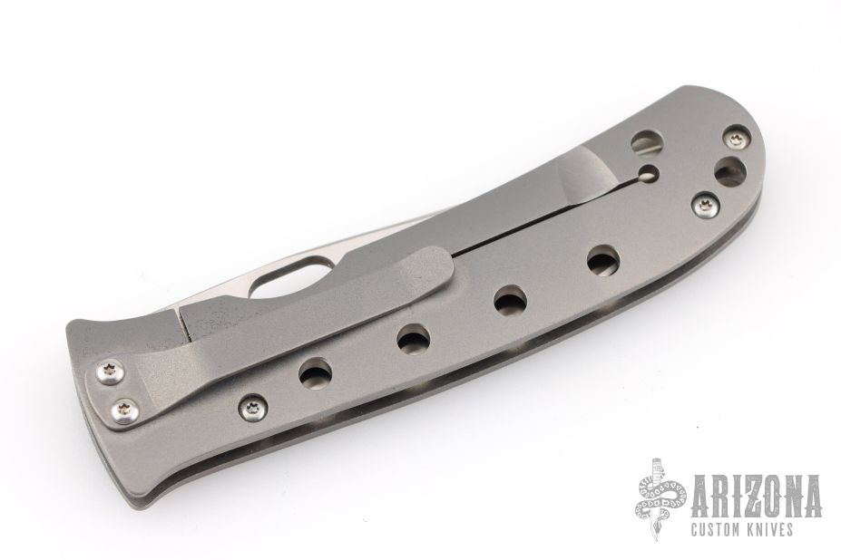 This TNT Framelock is a Tom Mayo design executed by Buck Knives. It features a satin finished drop point blade with thumbhole. The handle hasa drilled titanium frame over titanium standoffs. Titanium tip down clip and lanyard hole in pommel.  Includes the original box. Excellent condition.