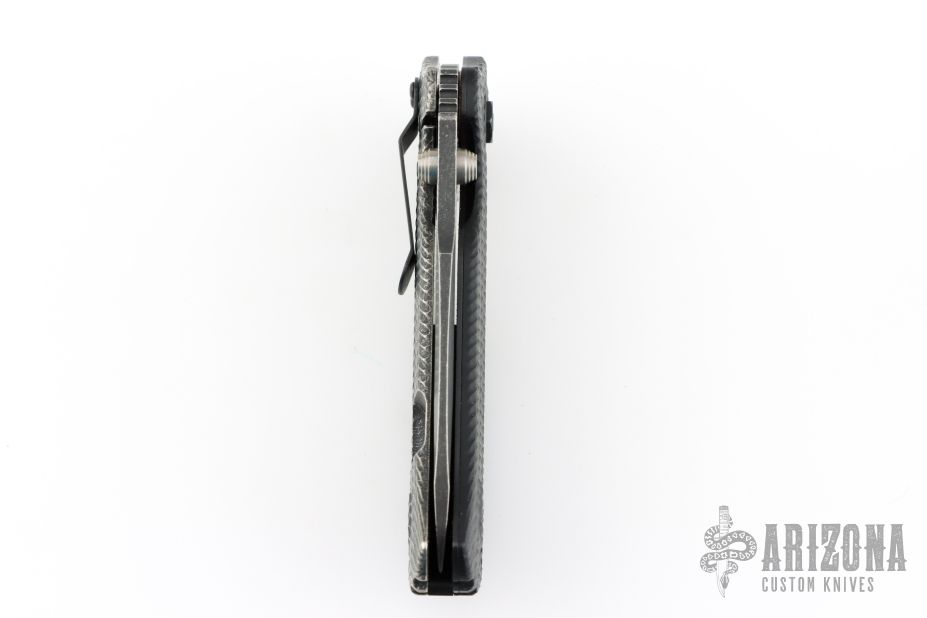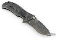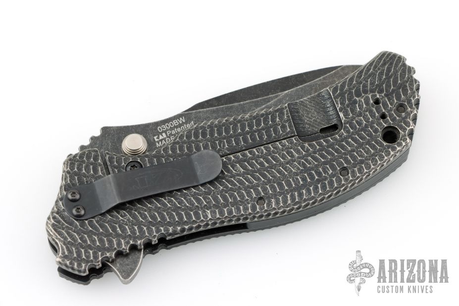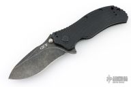 This 0300BW frame lock flipper by Zero Tolerance features a recurve spearpoint blade with a blackwash finish, textured black G10 and titanium scales. It also features the Speedsafe assisted opening system. 4-way reversible black stainless steel clip. Excellent condition. #2202.