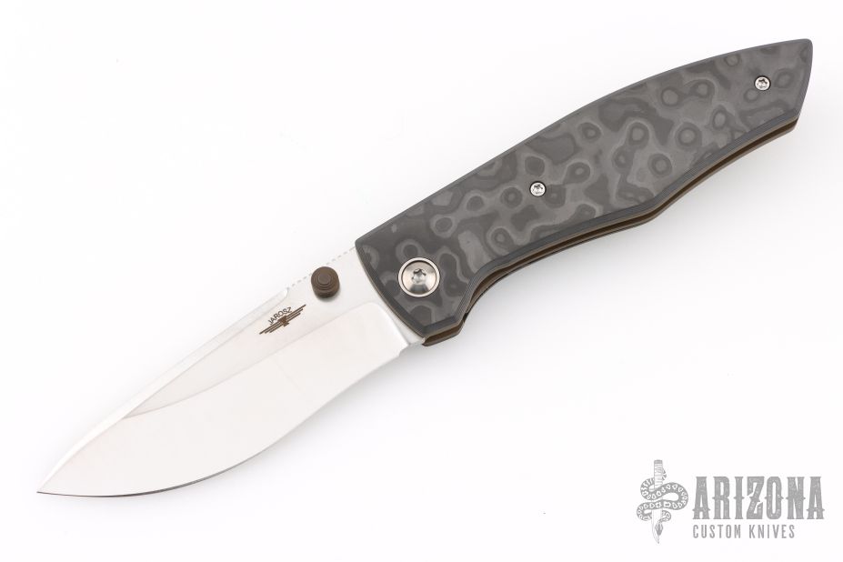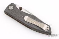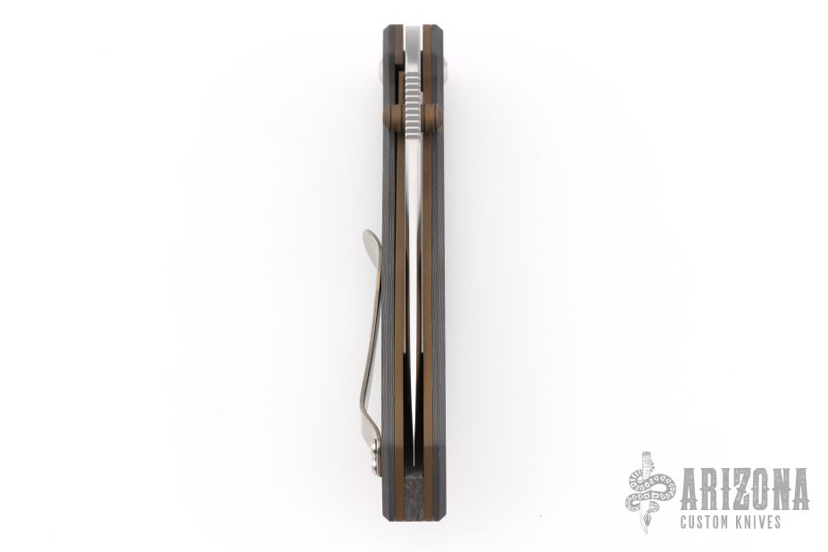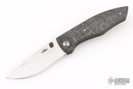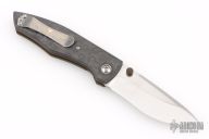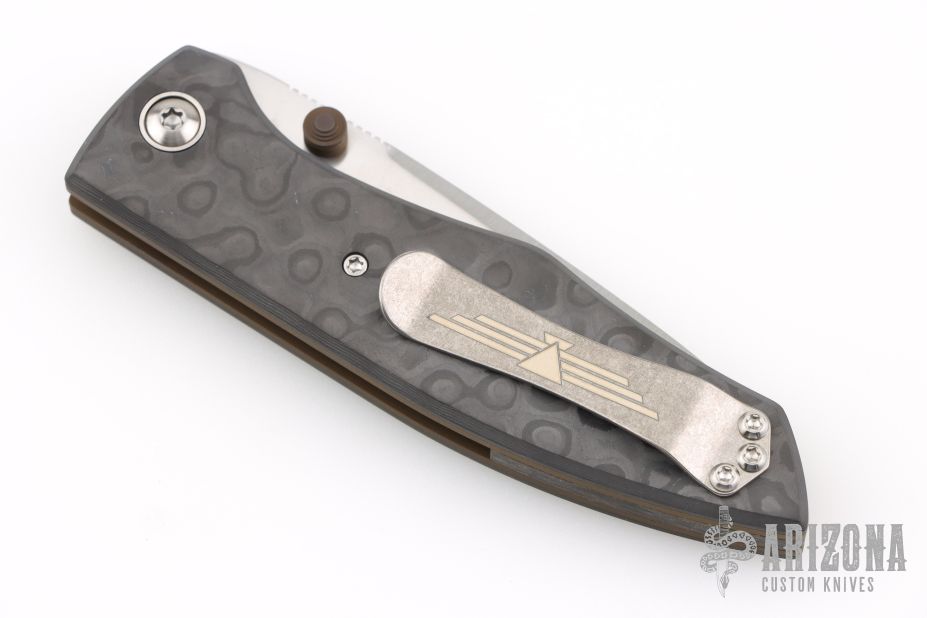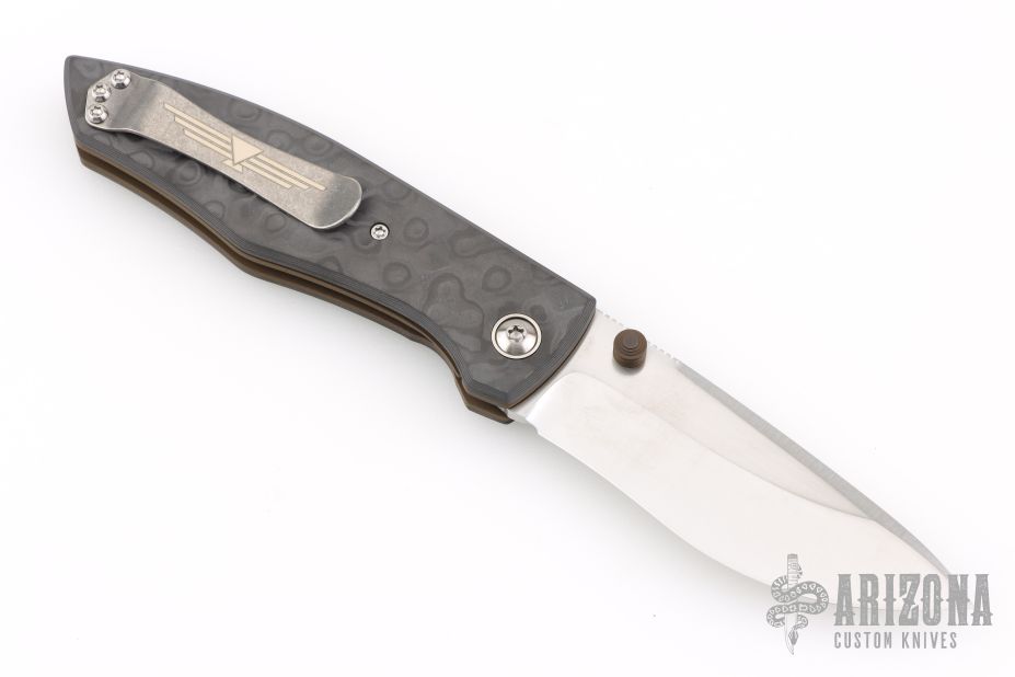 This Archon liner lock by Jesse Jarosz features a satin finished SK2 steel blade with dual thumb studs and notched thumbrest. The handle has Fat Carbon fiber scales with titanium pivot collars, blasted and anodized titanium liners, Dark Matter Carbon fiber backspacer, stonewashed titanium tip up clip. Nice lock up, detent and blade seating. Comes with zippered case and COA dated 1-26. New from maker!