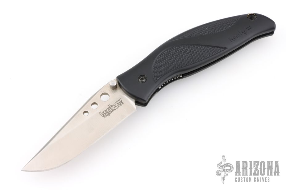 This 1560 Whirlwind by Kershaw features a satin finished blade with single thumbstud. The handle has a black composite handle with tip down stainless steel clip. Has some scratches, otherwise Excellent condition.
