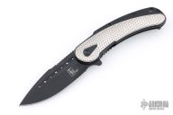 The popular field grade Bodega has been discontinued and replaced with this new offering from Begg Knives SteelCraft Series, the Mini Bodega. This EDC friendly framelock features a black coated blade with fullers, swedge, and notched rest for thumb placement. The titanium handle is tumbled/machined to give a two tone finish. This is a very comfortable knife that flips well and locks up with no play. Blade is centered when closed. Excellent condition. Comes with original box and papers.