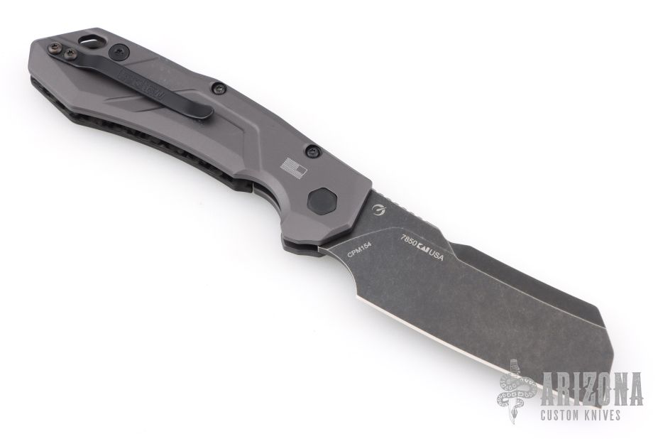 • Black stonewashed cleaver blade made of CPM 154 steel.