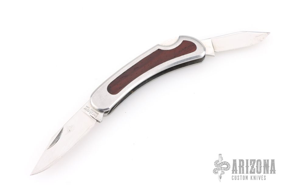 Vintage Kershaw Kai Folding Dual Blade 2050 Lockback Knife Rosewood Inlay