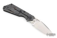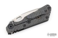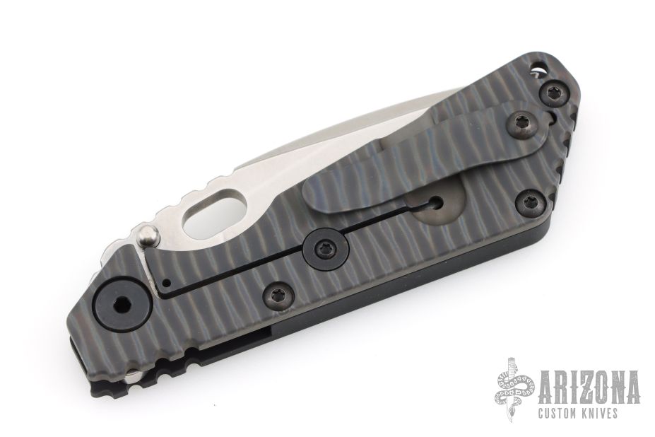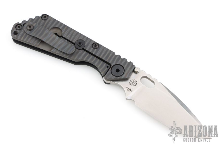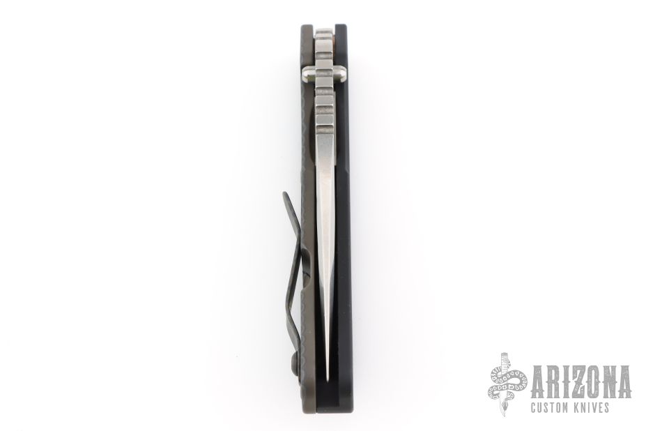 This SNG framelock folder by Mick Strider features a drop point blade and a black aluminum and flamed titanium frame and tip up titanium clip. Includes Hinderer "Lock Bar Stabilizer" for maximum reverse lock retention. Nice detent, lockup and blade seating. Excellent condition.