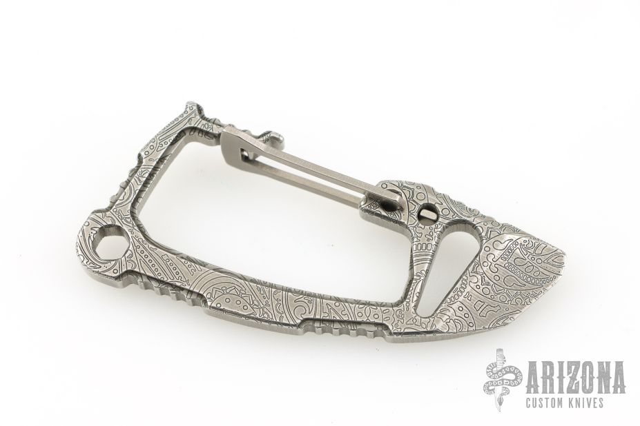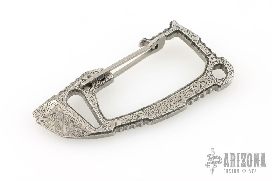 This Halo Carabiner from Ti2 Design and Vox Knives is crafted from tumble finished steel. Marked "Bond-Vox" on carabiner. Has been laser engraved. Excellent condition.