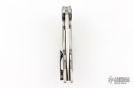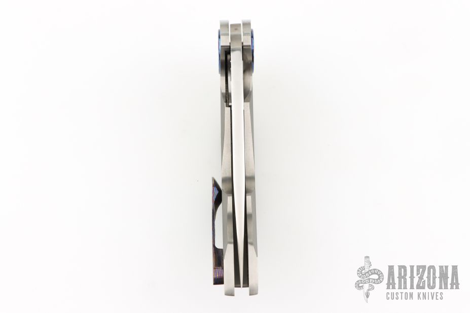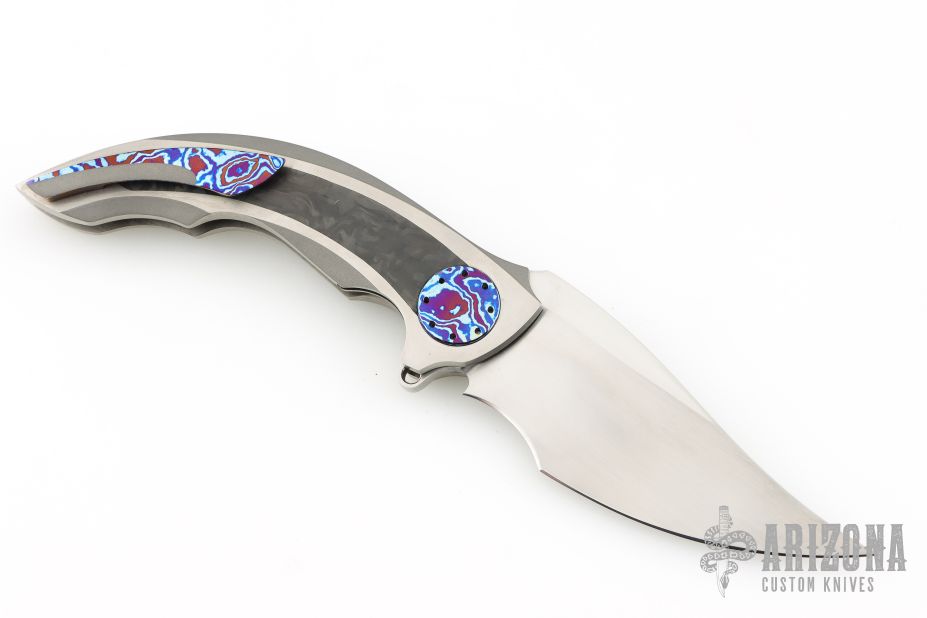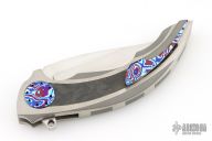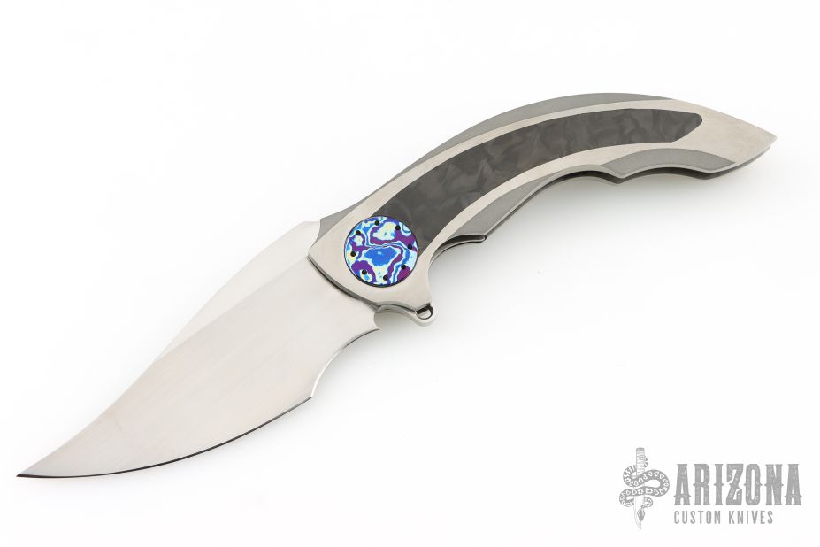 This Goliath 3.5 features a satin finished blade. The handle has a titanium frame, with carbon fiber inlays and mokuti pivots and a matching tip up pocket clip. Includes the original box. Excellent Condition.