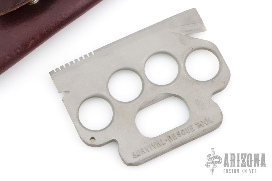 The present invention relates to a survival hand weapon of the nonfirearm type comprising an elongated blade having a beveled cutting edge formed along the forward edge thereof, a plurality of finger receiving openings extending from the edge of the elongated blade opposite the cutting edge for receiving a plurality of fingers from the users hand, and a palm rest extending fromthe plurality of finger openings for extending between the fingers and the palm of the users hand which acts to transfer the shock associated with a particular blow to the palm of the users hand.