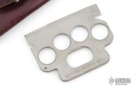 To utilize the hand weapon 10 of the present invention, the respective fingers of the users hand are inserted through the appropriate openings 18, 20, 22 and 24 of the finger receiving portion 16. The entire hand weapon 10 is moved laterally along the fingers to where the finger portion 16 extends between the users knuckles and the middle joints of the fingers, as illustrated in FIG. 3. Once the hand weapon 10 is positioned in this position, the end portions of the fingers are wrapped back toward the palm and engage the palm rest, pushing the same tightly adjacent the palm. In this position, the hand weapon 10 is securely held in the hand and will not tend to drop or be separated thereform under normal circumstances.