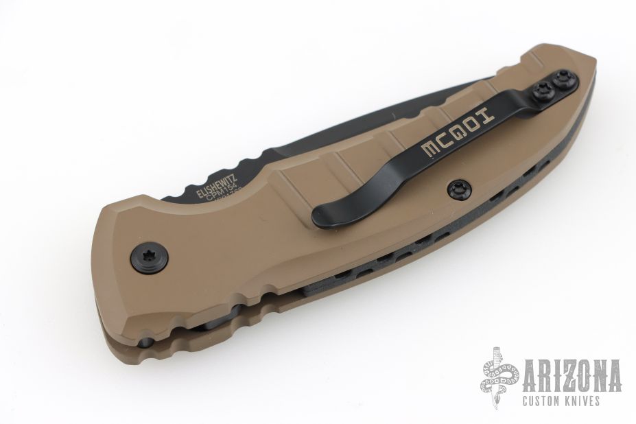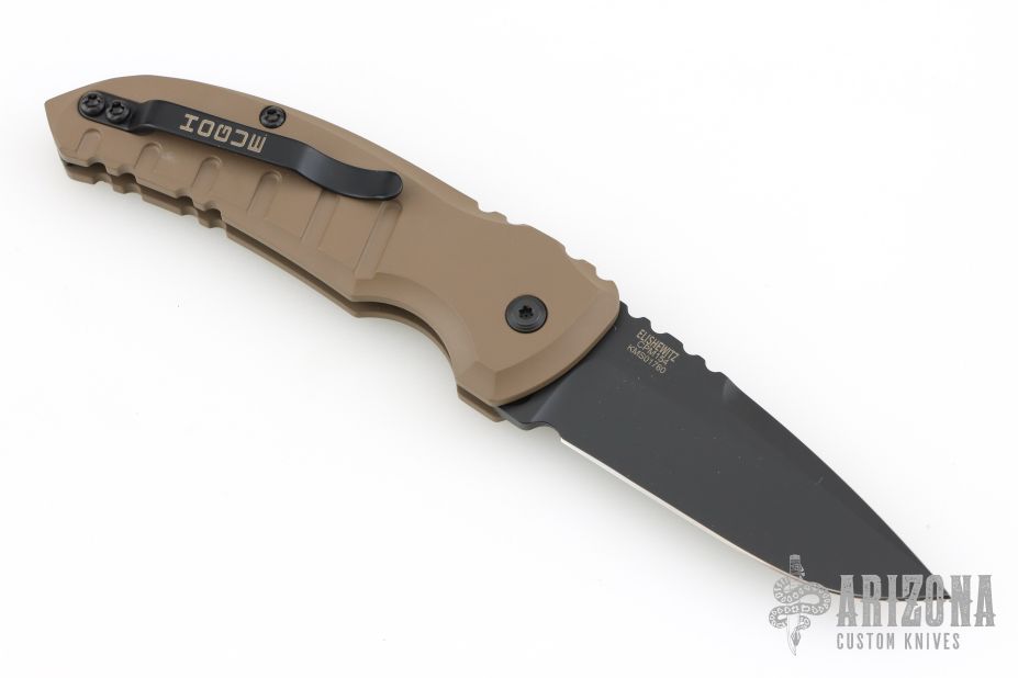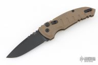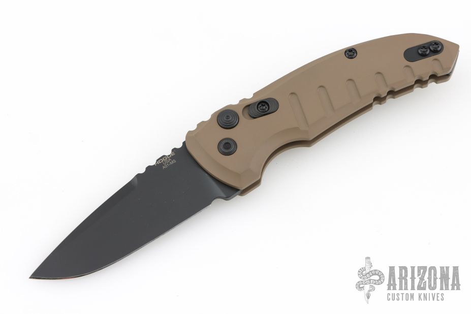 This Microswitch Auto by Hogue features a black drop point style blade with a notched thumbrest. The handle has a FDE aluminum frame with a black steel tip up pocket clip. Includes original box, zipper case, and papers. Excellent condition.
