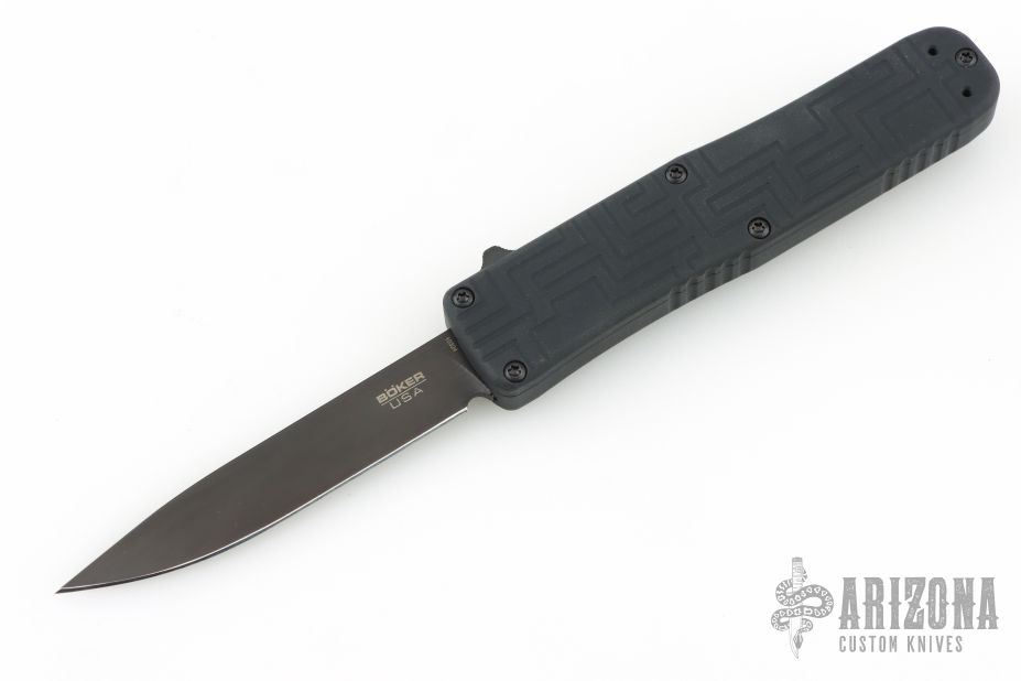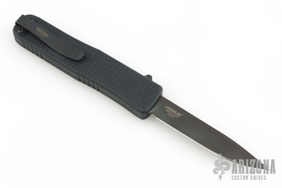 There's always a great fascination in a high quality "out the front" (OTF) automatic knife. The fast, straightforward action when opening or closing the blade is unique in the world of knives. For this purely US-based project, Boker teamed up with Hogue knives from Nevada and created these extraordinary OTF autos. The great experience of Hogue with this specific technique, together with Boker's long-time experience with switchblades for the international market, brought out an amazing knife which is extremely reliable and ready at hand whenever you need it. The massive aluminum handle is CNC-milled and equipped with a traction pattern which enhances a safe and comfortable grip. The blade is made out of 154CM steel and combines sturdiness with a high edge retention. The reversible steel clip keeps the Boker Plus OTF close at hand, in your pocket or on your gear. Fully manufactured in the USA.