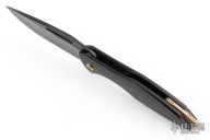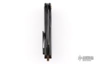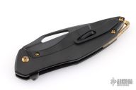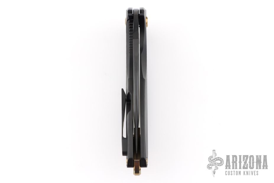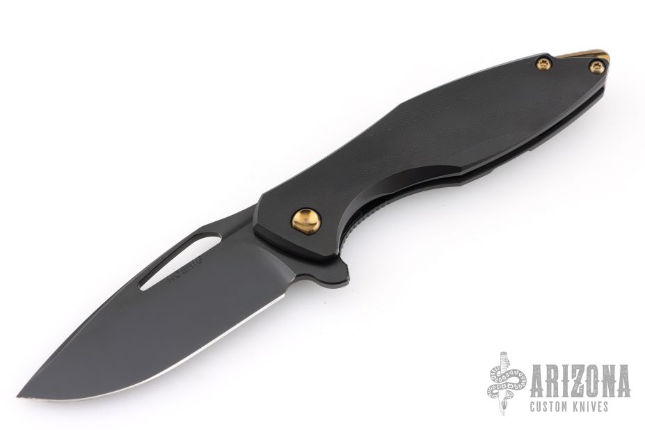 This Arius by Koenig knives features a DLC Burnished w/ PF blade with thumbhole and flipper. The handle has a patterned DLC titanium frame with a titanium tip up clip, anodized titanium hardware and backspacer. Has ceramic bearings and a ceramic detent ball. Nice detent, lockup and blade seating. Comes with original box and COA Dated 3-31-22. Excellent condition. COA doesn't mention DLC, might be after market, if it is, its very well done.