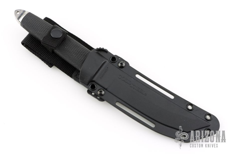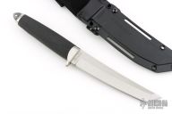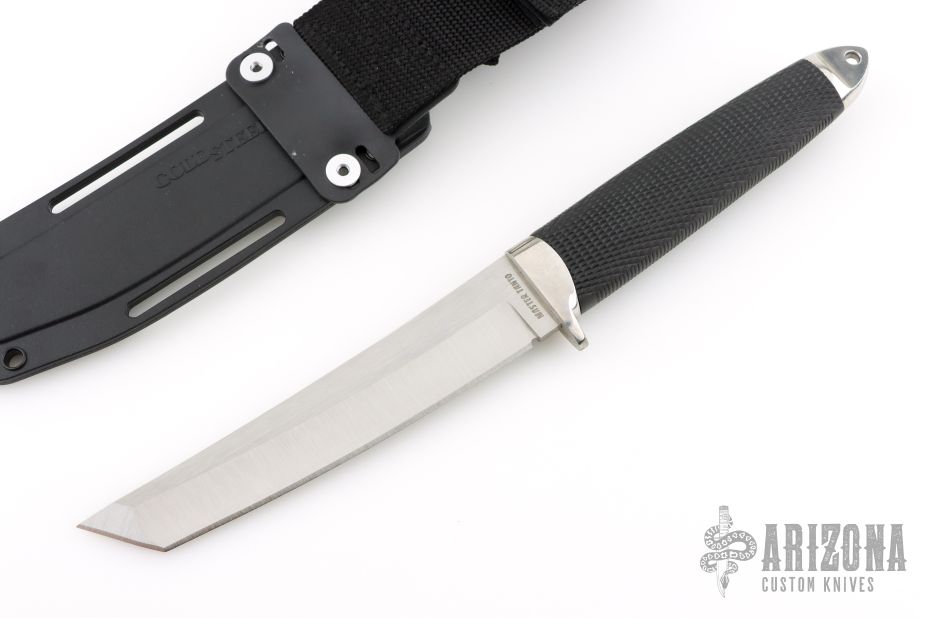 This Master Tanto by Cold Steel features a satin finished San Mai tanto blade with .187" blade stock and 1.121" blade depth, hidden tang construction. Guard and pommel are stainless with a textured Kraton grip. Comes with black Secure-Ex sheath. Excellent condition.