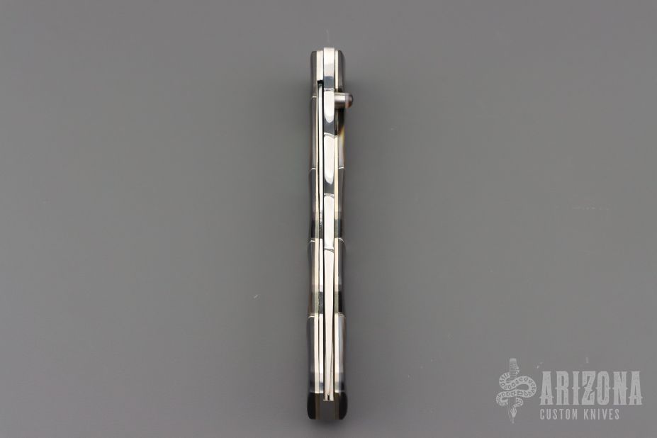 A native of Japan, Koji Hara was born in 1949 in Imari City, and is one of the most traveled of Japanese knifemakers, attending shows throughout his home country as well as over the United States and Europe. When he began making his first knives in 1988, they were his versions of Bob Loveless designs. Three years later he held a one-man knife show in Seki City, Japan, heart of the production cutlery industry. It was at this point in his career that he realized he had to make and sell knives of his own concept and design if he was going to succeed. In 1994 Koji had become a Probationary Member of the American Knifemakers Guild, and in 1997 a Voting Member. During this period he was participating in at least five American shows per year, and would soon be attending shows in Europe. Annually, this prolific maker attends two knife shows in Japan, in addition to having maybe two one-man shows, usually in smaller communities, where collectors don't visit the larger cities. He feels these small shows enable more and more people to become familiar with custom knives. He has received awards for his folders such as "Best in Show" and "Most Innovative" in several international knife shows. Koji primarily uses a powdered stainless steel known as Cowry-Y, made by Daido Steel in Japan, for his blades. It holds an excellent cutting edge and polishes to a high mirror finish. Although one of the drawbacks of powdered steel is its weakness towards lateral impact, this can be corrected through proper heat-treating. Koji also makes knives featuring ATS-34, D-2, 440C and other steel blades, based on customer preference. His preferred method of making blades is via stock removal. A folder specialist, he often carves the handle material into a terraced landscape to feature his classic "Air-Step" design.