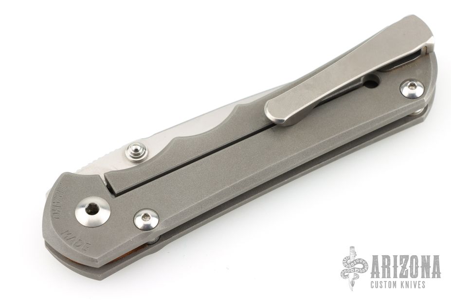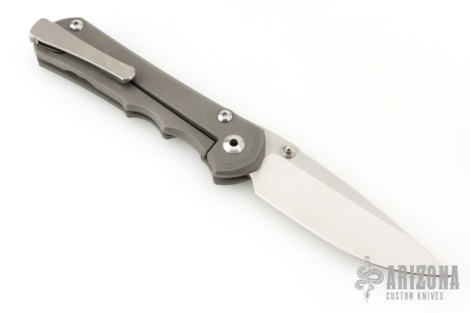 This Large Inkosi from Chris Reeve features a tumble finish blade with dual thumb-studs and a bead blast titanium frame. Bead blast titanium frame and a LynchNW clip, tip up carry.  Comes with original box, tools and original clip. Nice detent, lockup and blade seating. Comes with original clip, tools and lanyard. Has some scuffs, otherwise good condition.