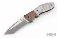 "I believe that in order to make a superior knife you must use superior materials. That is why I work with top grade, high-tech materials. The steels I generally use in my folders and fixed blades are CPM S30v, CPM 154 CM, BG-42, and Damasteel. The handle materials I mostly use range from G-10, Micarta, and carbon fiber to mother of pearl and fossilized mammoth ivory. I exclusively use 6al/4v titanium for the liners in my folders. I mostly make my bolsters from materials such as 6al/4v titanium, damascus, carbon fiber, timascus or mokume. When making Japanese style blades I generally use 1050, 1084, or L6. The handles will usually consist of a phenolic handle covered in stingray skin then wrapped with a nylon cord that has been impregnated with resin to give it maximum strength, toughness, and longevity. I am constantly striving for perfection in creating, for what I feel is one of the highest quality knives on the market today."