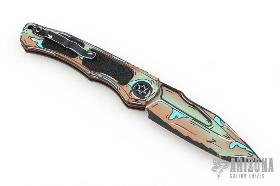 • Blade: Tanto blade with a "Shipwreck" finish made from CPM MagnaCut steel.