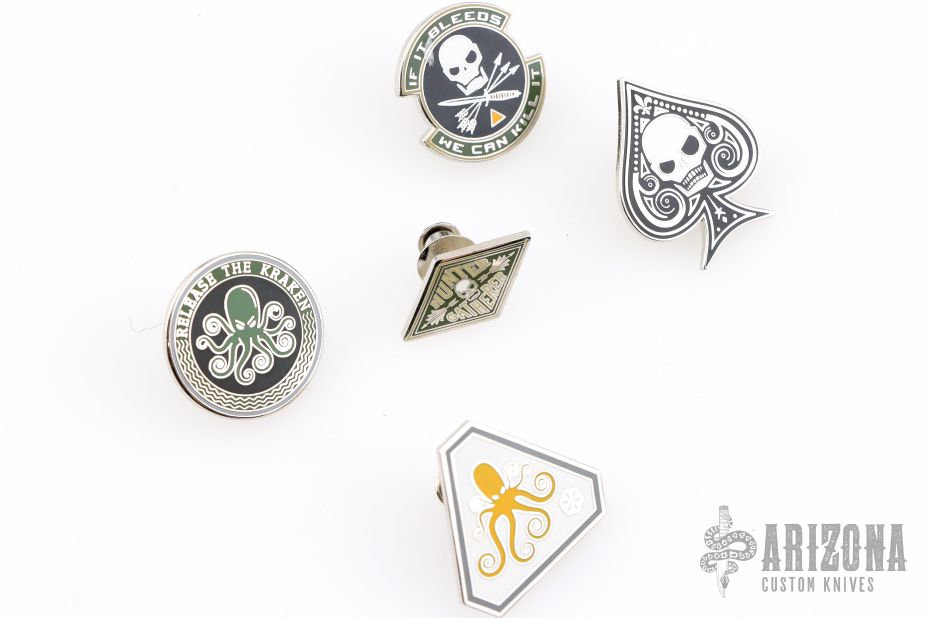 Five lapel pins by Prometheus Design Werx. Excellent condition.
