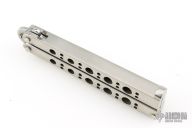 Balisong USA started manufacturing butterfly knives in the late 1970s, then changed its name to Pacific Cutlery in the early 1980s, before finally becoming Benchmade. The earlier knives featured a wide variety of custom blade designs (many of which were hand ground by master knifemaker Jody Samson, well known for making the swords in the movie Conan the Barbarian), as well as a number of exotic inlays for the handles (ivory, prehistoric ivory, scrimshawed ivory, mother-of-pearl, ebony, tropical woods, etc.)