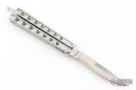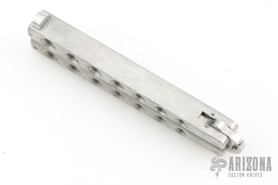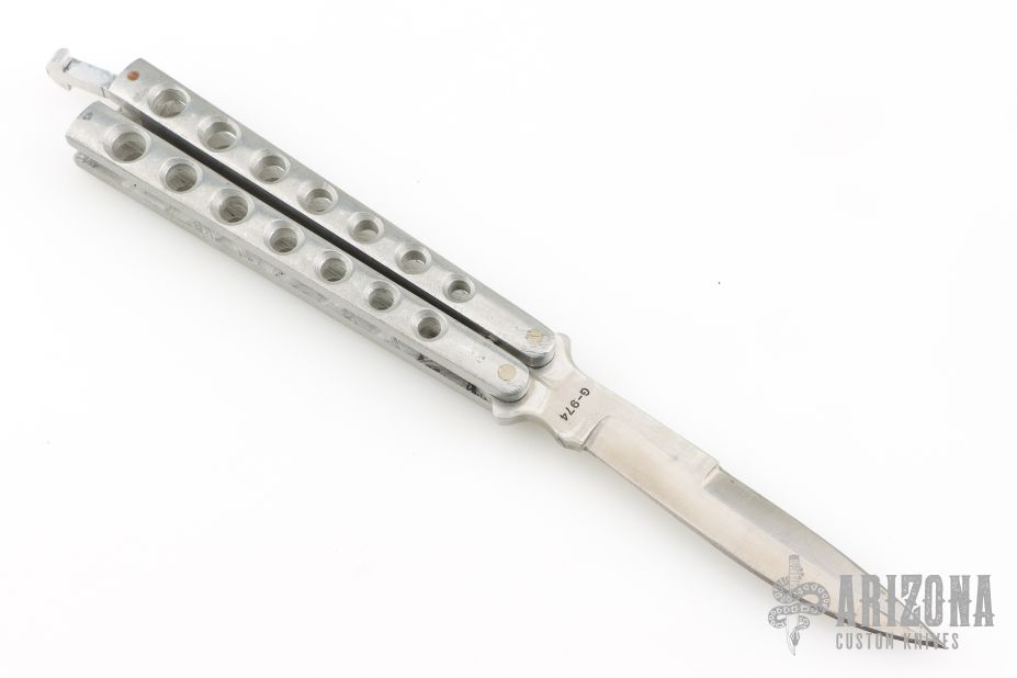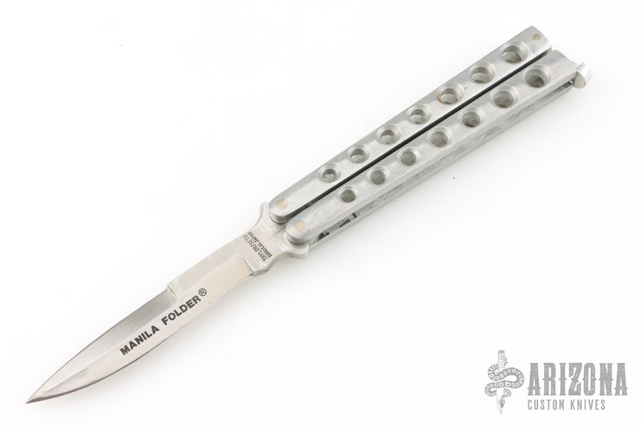 This Manila Folder is a 1980's classic Taylor/Seto Balisong with aluminum handles. Has a satin finished blade with a sharpened top edge. Has scuffs and scratches throughout, otherwise good condition.