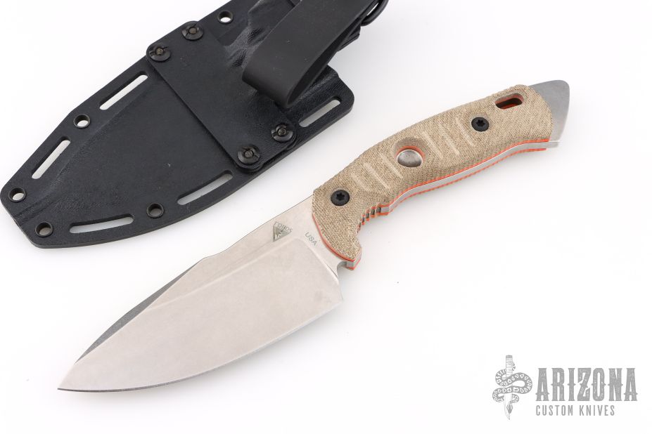 The handles come in a variety of colors of micarta with several colors of liners to find the combination that speaks to you. The butt of the knife has a larger tang extension that can double as a bashing tool or glass breaker in emergencies. The knife comes complete with a fitted Kydex sheath to carry it with you wherever you go.
